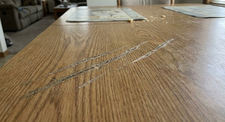 Bề mặt gỗ công nghiệp tuy cứng nhưng nếu bị trầy xước sâu thì rất khó phục hồi. Các vết xước cũng là nơi nước và hơi ẩm dễ xâm nhập, gây hư hỏng phần cốt gỗ bên trong.