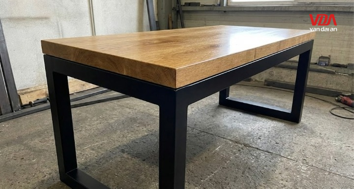 Ví dụ như bàn làm việc văn phòng dạng module, bàn ăn chân sắt mặt gỗ rời hoặc các hệ kệ kho. Ở những sản phẩm này, phần khung sắt và phần gỗ có kết cấu khá độc lập: khung sắt chịu lực bên dưới, tấm gỗ hoàn thiện phía trên. Những sai lệch nhỏ về kích thước thường không ảnh hưởng đáng kể đến thẩm mỹ hoặc công năng sử dụng.