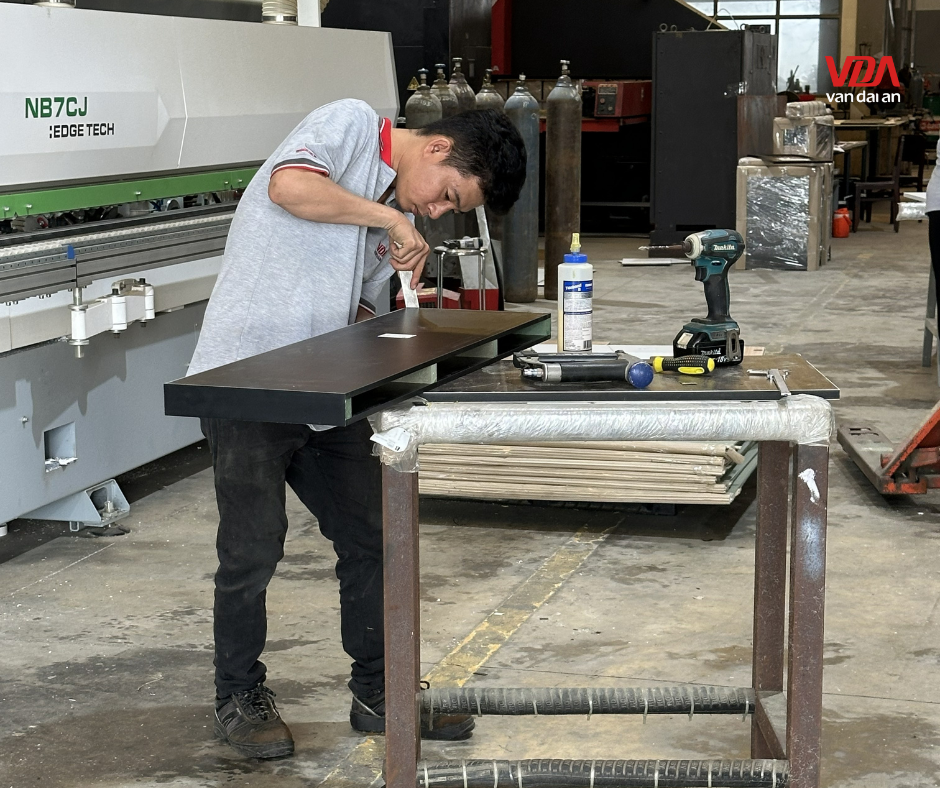 Vạn Đại An là một trong số ít các đơn vị sở hữu đồng thời xưởng mộc và xưởng kim loại. Điều này mang lại lợi thế lớn về giá thành và tiến độ khi thi công nội thất văn phòng trọn gói. Sự chủ động trong sản xuất giúp các chi tiết kết hợp giữa gỗ và khung sắt luôn ăn khớp hoàn hảo. Chúng tôi cam kết mang đến những sản phẩm nội thất fit-out có độ hoàn thiện cao nhất, đúng bản vẽ thiết kế và đúng tiến độ bàn giao cho chủ đầu tư.